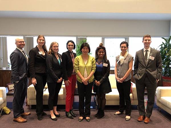 美國NGO青年領袖訪問團與含外交部隨行人員共8人,於今(26)日拜會臺中市政府林依瑩副市長,一方面參觀臺中市政發展,另一方面也希望瞭解臺中市對國際NGO中心的相關規劃。本團係由臺灣駐美代表處及辦事處共同推薦籌組,團長為Olivia Johnson,團員為來自美國各地具影響力之「非政府組織」(Non-Governmental Organization, NGO),均為45歲以下具政治發展潛力之人士,且均未曾訪臺。
