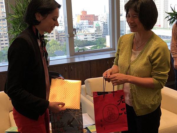 最後,林副市長也致贈每位團員臺中花博紀念品,以及臺中名產-太陽餅。林副市長說,「希望這些國外朋友都能化身臺中的城市代言人,多多幫我們宣傳臺中、宣傳花博活動」