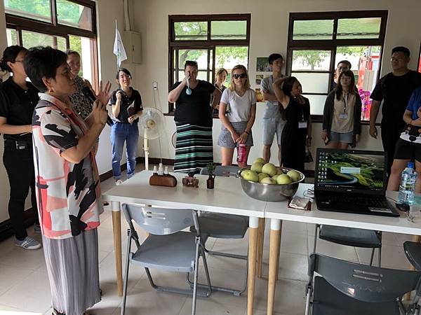 當日天氣炎熱,每個人都汗流浹背;幸虧亞洲大學廖淑娟教授帶來當天新鮮採下的一大籃香瓜(又稱甜瓜),送大家一人一顆,緩解不少暑氣。