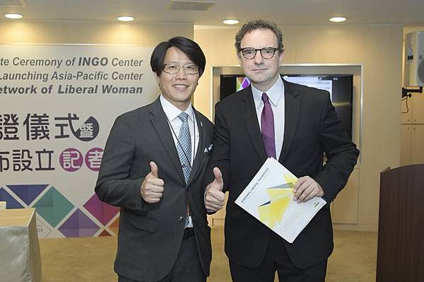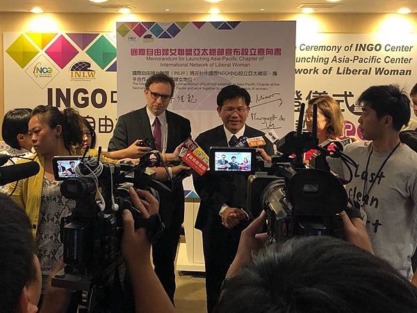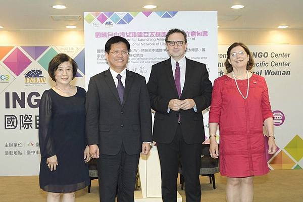 ▌Lin, Chia-Lung, mayor of Taichung City, presented in the “International Certificate Ceremony of INGO Center and Press Conference for Launching Asia-Pacific Center of International Network of Liberal Woman” on July 12th. He not only presents the International Advisory Certification to Dr. Juli Minoves-Triquell, president of the Liberal International, but he also signs the Letter of Intent in regard to the establishment of the INLW Asia-Pacific Chapter in the INGO Center with Dr. Margaret de Vos van Steenwujk, the president of the International Network of Liberal Woman.