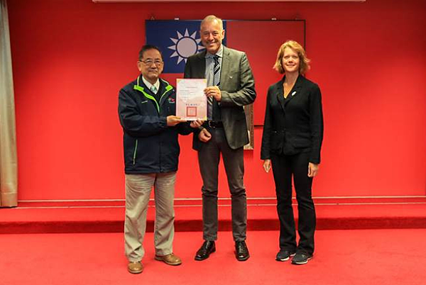 今(12)日他出席市政會議,由副市長林陵三代表頒發證書,成為台中INGO中心首位國際顧問。